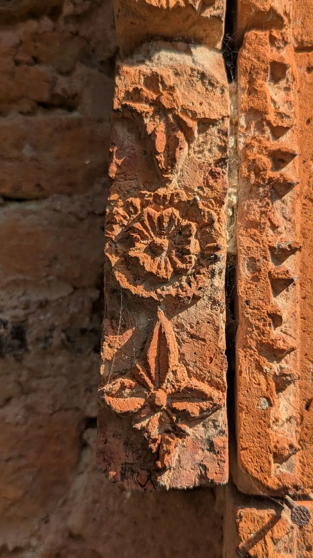 রিকশা নিয়ে রওনা দিলাম। শহরের ভিড় থেকে বের হয়ে গলি-রস্তায় ঢুকতেই পরিবেশটা শান্ত হয়ে গেল। প্রায় ২০–২৫ মিনিটেই পৌঁছে গেলাম জোড়বাংলা পাড়ায়। দূর থেকেই বোঝা গেল, কেন এর নাম ‘জোড়বাংলা’। পাশাপাশি দাঁড়ানো দুটি দোচালা ঘর, একসঙ্গে জোড়া লাগানো ছাদ, নিচে ইটের উচু বেদি—সব মিলিয়ে গ্রামীণ দোচালা ঘরের স্থাপত্য যেন এখানে রূপ নিয়েছে একটি ছোট মন্দিরে।