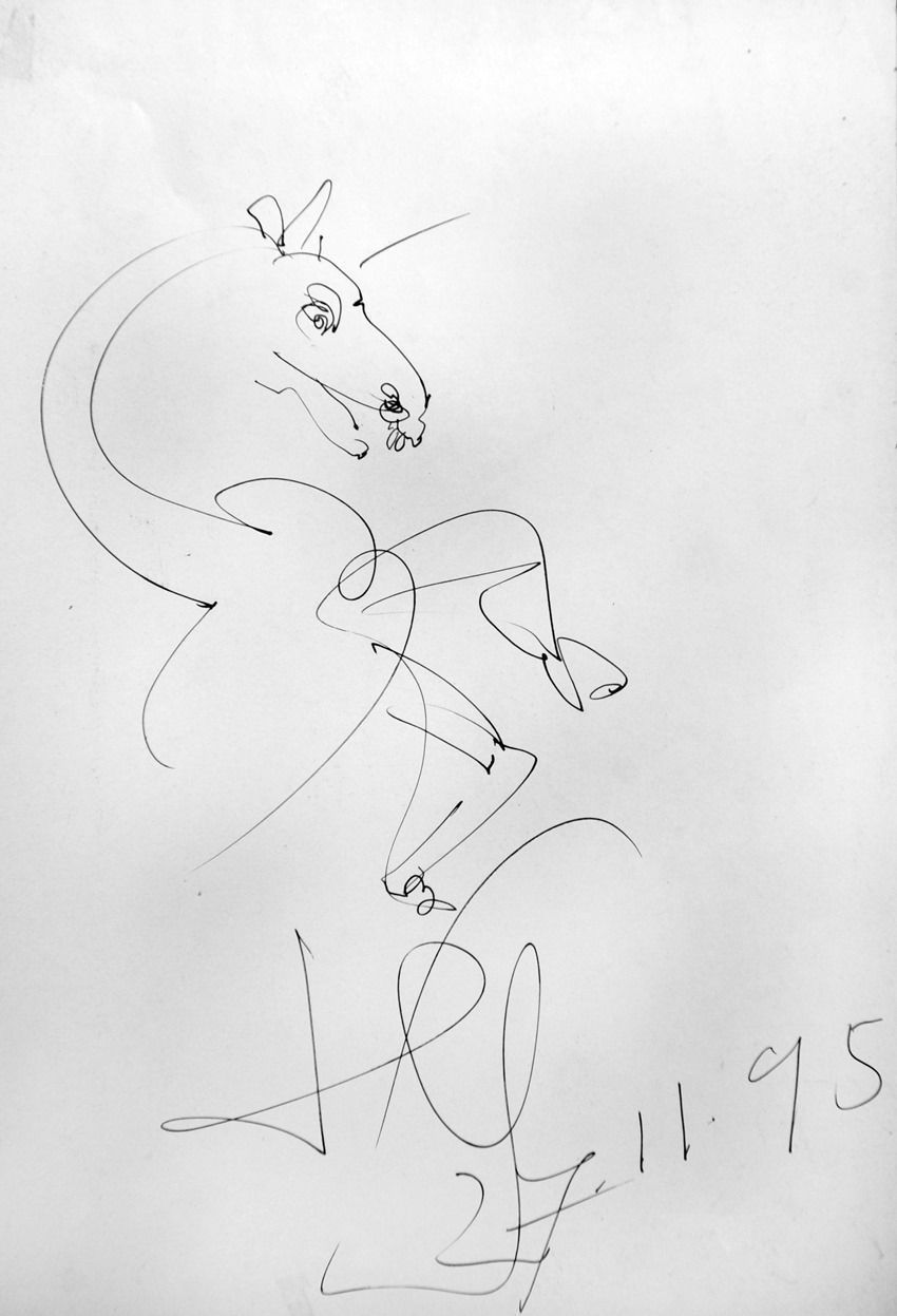 তাঁর ছবি দেখে অনুমান করা যায় এটা শিল্পকলা একাডেমির গোল গ্যালারির সামনে তোলা। অনেক শিল্পীর ড্রইং এক দিনে সংগ্রহ করেছিলাম। কিন্তু সেটাতো ১৯৯৮ সালের ঘটনা। ড্রইংটিতে তারিখ রয়েছে ১৯৯৫ সাল। হয়তো দ্রুত লিখতে গিয়ে ৯৫ হয়ে গিয়েছে। একটা কথা না বললেই নয়; রনজিৎ দাস এবং তাঁদের গ্রুপ মিলে বিগত শতাব্দির শেষের দিকে অনেক আর্ট কর্মশালার আয়োজন করেছেন। সেসব কর্মশালায় গিয়ে দেখেছি, ছবি তুলেছি।