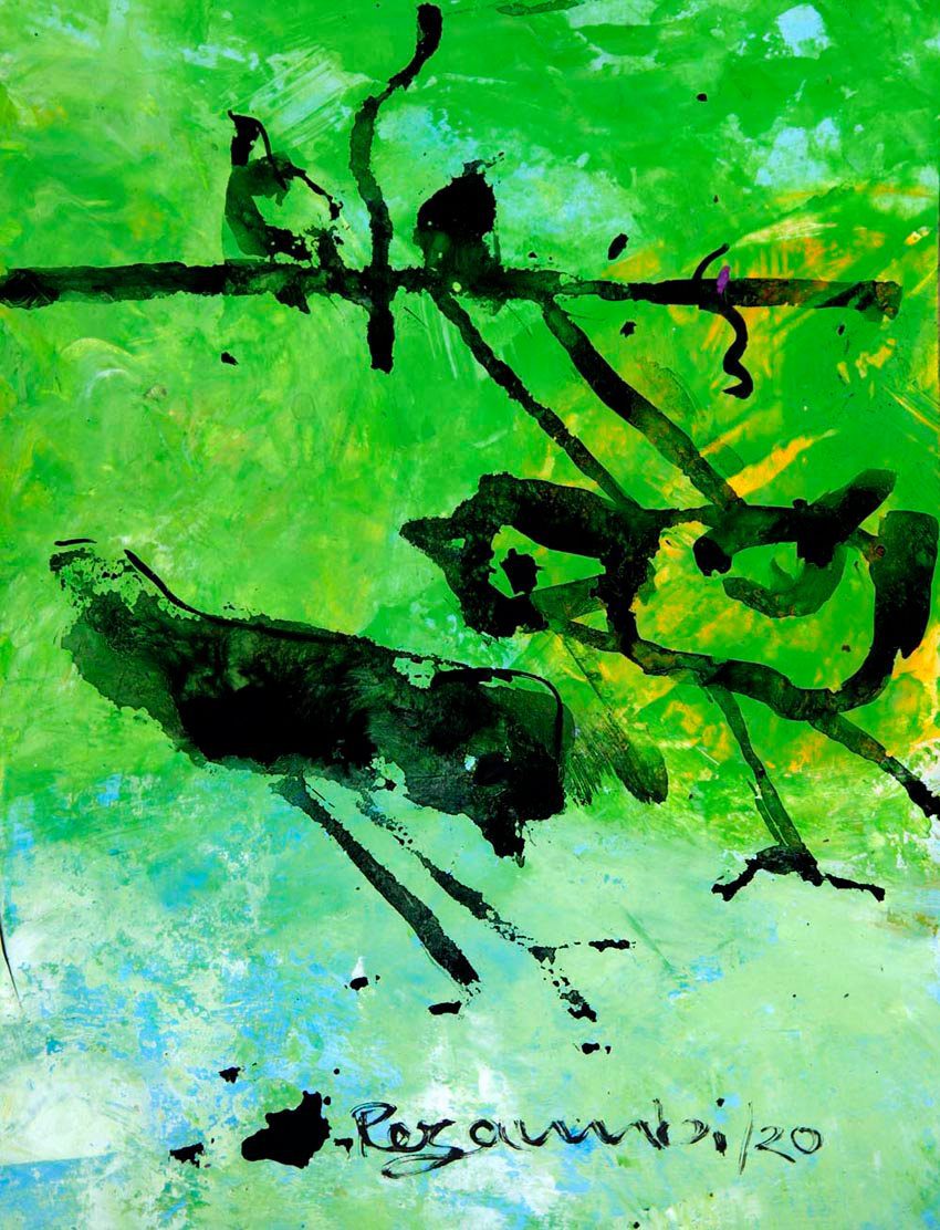 শিল্পী রেজাউন নবী তাঁর ক্যানভাসে স্থান করে নিয়েছে বিমূর্ত প্রকৃতি। প্রকৃতির নানা ফর্ম, রঙ, আলো, বাতাস তাঁর মত করে উপস্থাপন করেছেন ক্যানভাসে।