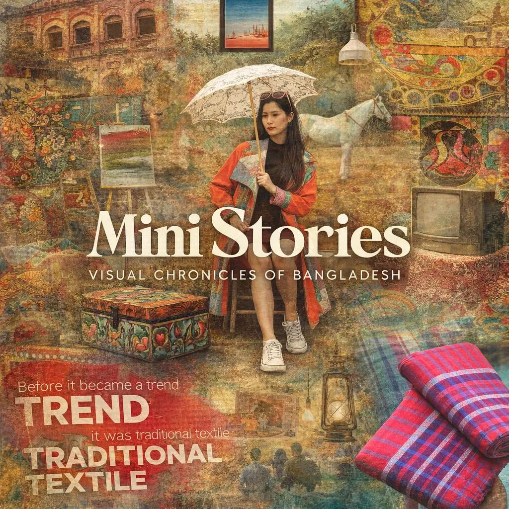 Mini Stories হলো আমাদের ভিজ্যুয়াল আর্কাইভের একটি ধারাবাহিক সংগ্রহ, যেখানে বাংলাদেশের লোকজ সংস্কৃতি, ঐতিহ্য, কারুশিল্প, জেলা ব্র্যান্ডিং, ঐতিহাসিক স্থাপনা ও জীবনযাত্রার ছোট ছোট গল্প ছবি ও সংক্ষিপ্ত লেখার মাধ্যমে তুলে ধরা হয়। এখানে প্রতিটি ইমেজ একটি গল্প বলে—কখনো একটি জেলার পরিচয়, কখনো একটি পণ্যের ইতিহাস, আবার কখনো মানুষের সাথে জড়িয়ে থাকা সংস্কৃতির স্মৃতি।