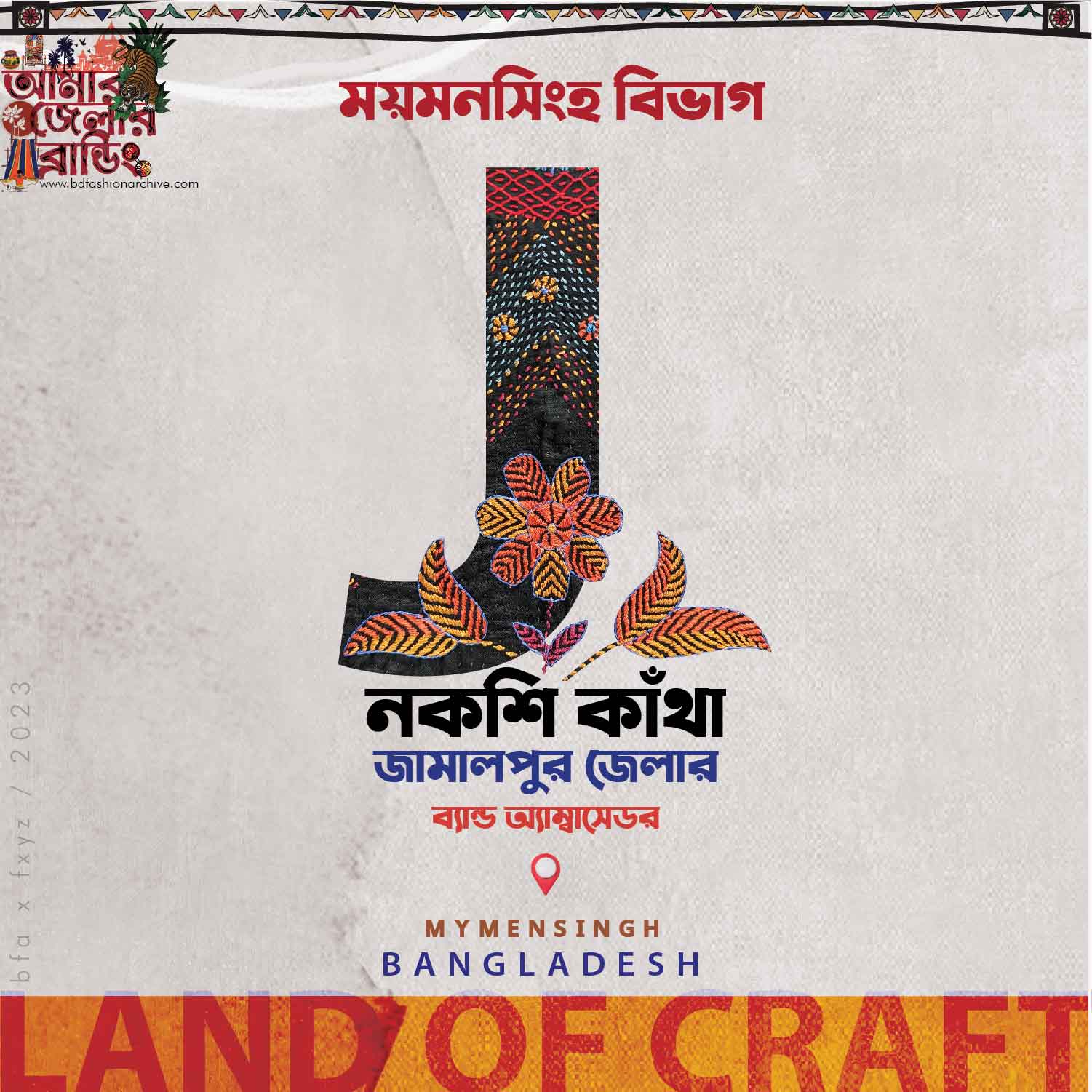 জামালপুর জেলার ব্র্যান্ডিংয়ে নকশিকাঁথা একটি বিশেষ স্থান দখল করে আছে, যা বাংলাদেশের লোকশিল্পের অমূল্য একটি অংশ। নকশিকাঁথা কেবল একটি হাতে তৈরি কাপড় খন্ড নয়, এর প্রতিটি সেলাইয়ের ফোঁড়ে লুকিয়ে থাকে কোনো না কোনো গল্প। একেকটি নকশিকাঁথায় ফুটে ওঠে মানুষের ভালোবাসা, দুঃখ, এবং জীবনের নানান রূপ। জামালপুরের নকশিকাঁথা বাংলার হারিয়ে যাওয়া সংস্কৃতির গল্পকে পুনরুজ্জীবিত করে। এই শিল্পকে কেন্দ্র করে জামালপুর জেলার মৌলিক সংস্কৃতিকে সহজেই তুলে ধরা যায়।